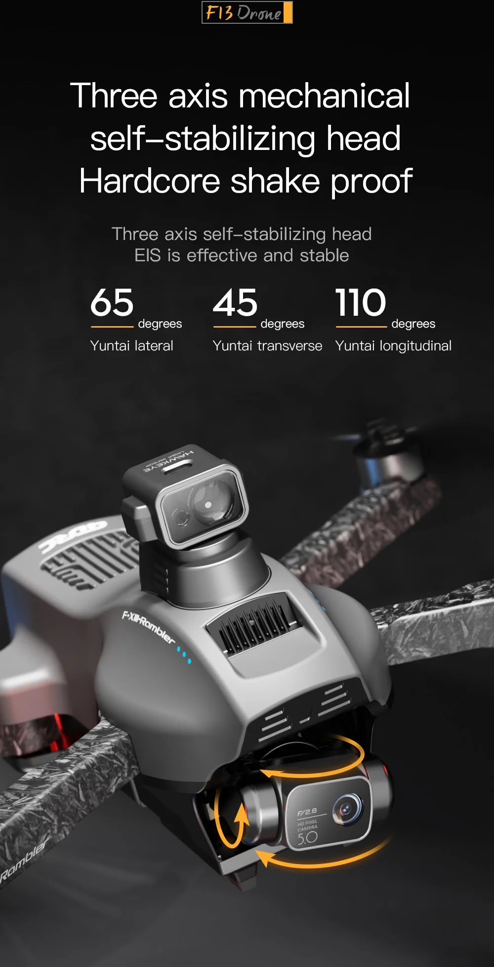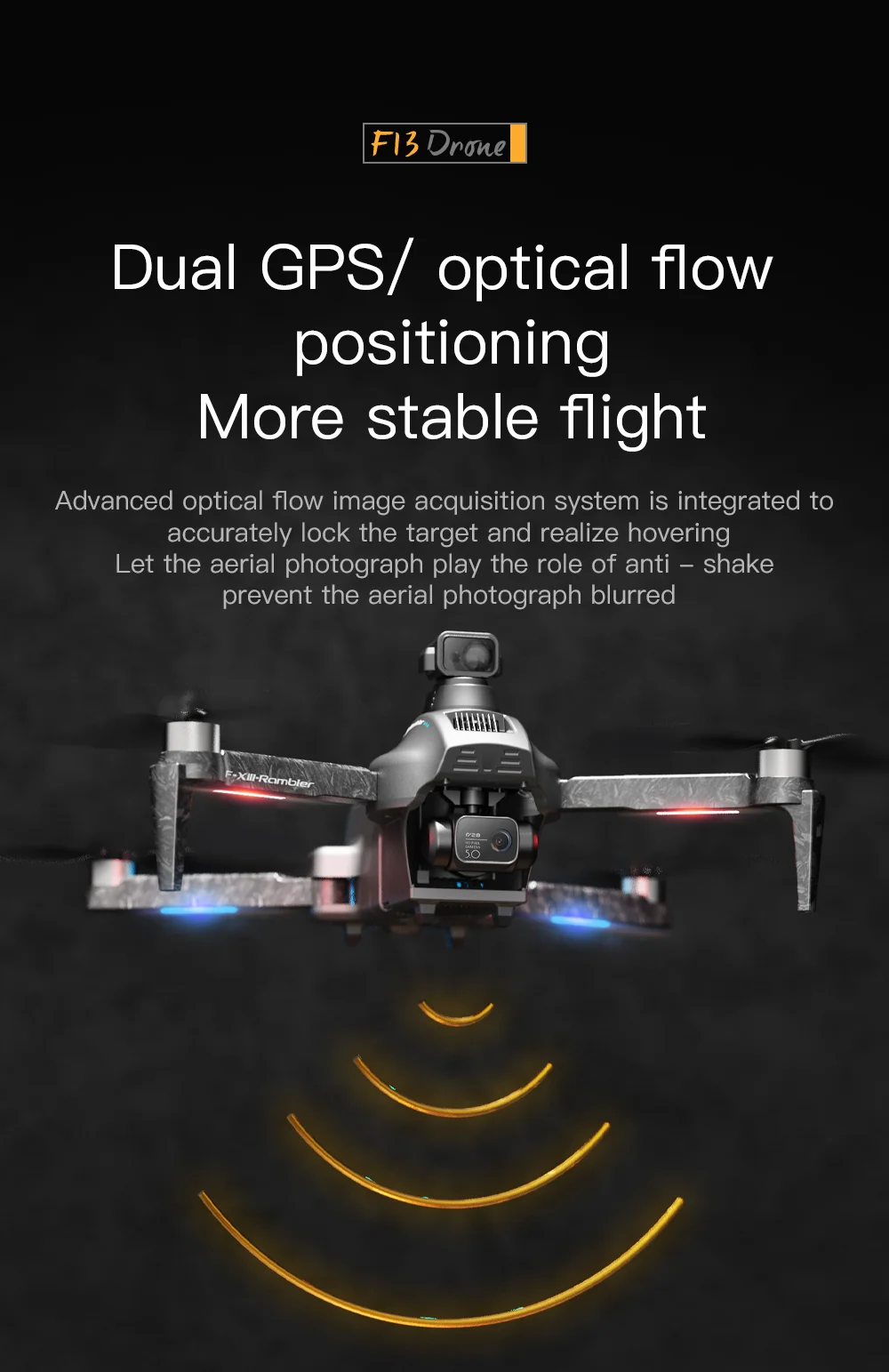 F13 GPS Drone 8K HD Dual Camera 5G 3-Axis Anti-Shake Gimbal Obstacle Avoidance Brushless Motor Helicopter Foldable RC Quadcopter